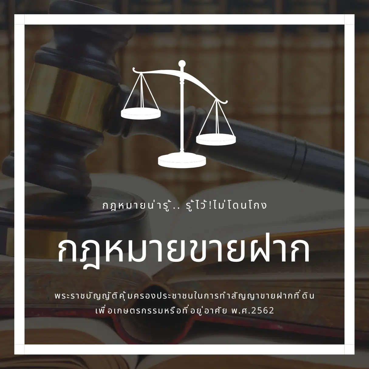 กฎหมายน่ารู้ ป้องกันกลลวงมิจฉาชีพ ฉบับเข้าใจง่าย (อ้างอิงจากพระราชบัญญัติคุ้มครองประชาชนในการทำสัญญาขายฝากที่ดินเพื่อเกษตรกรรมหรือที่อยู่อาศัยพ.ศ.2562)